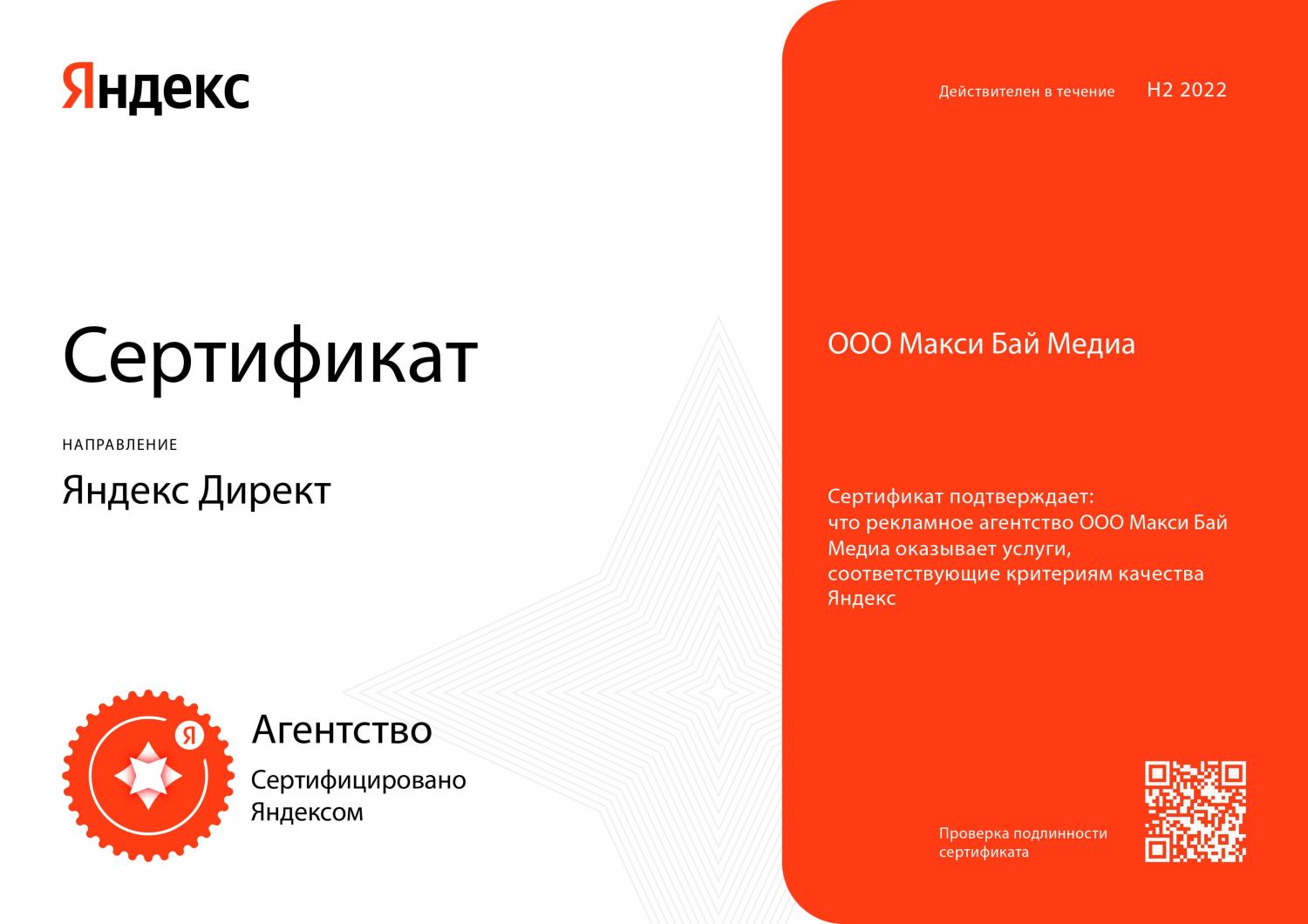 Наличие сертификата Яндекса указывает на то, что MAXI.BY media:
